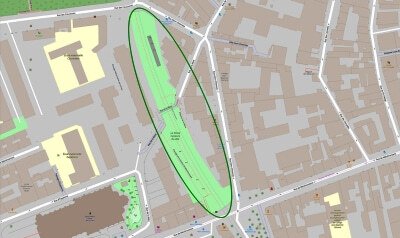 - Plan masse de la promenade entre la gare Rosa Parks et l’avenue de Flandre