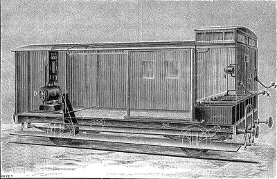 - Vue d’un fourgon de la Ceinture disposé pour l’éclairage électrique collectif de tout le train