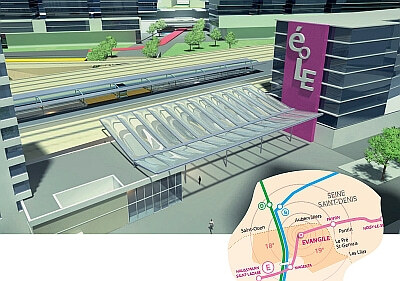 - Vue de la future gare Éole-Évangile du RER E (document STIF - juin 2010).