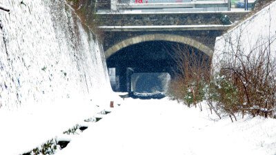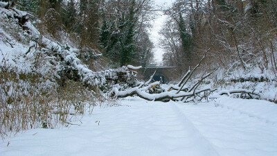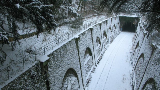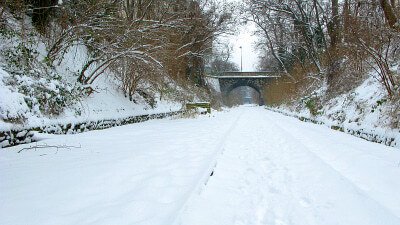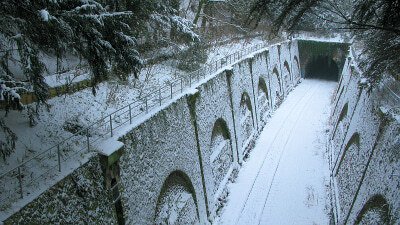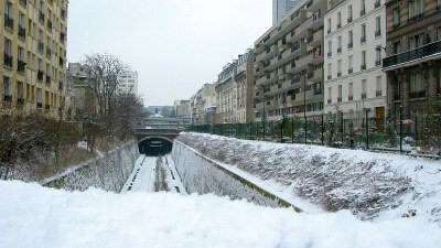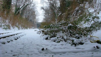 - Tranchée de la Petite Ceinture dans le parc Montsouris sous la neige