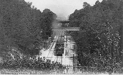 - Train passant dans la tranchée des Buttes-Chaumont au sortir du tunnel