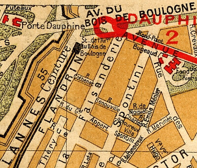 - Les terrains autour de la porte Dauphine ne sont pas encore lotis, à cause de la présence des fortifications parisiennes.