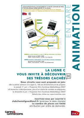 - Samedi 1er juin de 10h30 à 13h00 au départ de la station Péreire-Levallois : « De la Petite Ceinture à la ligne C : 160 ans d’évolutions et de projets » ;